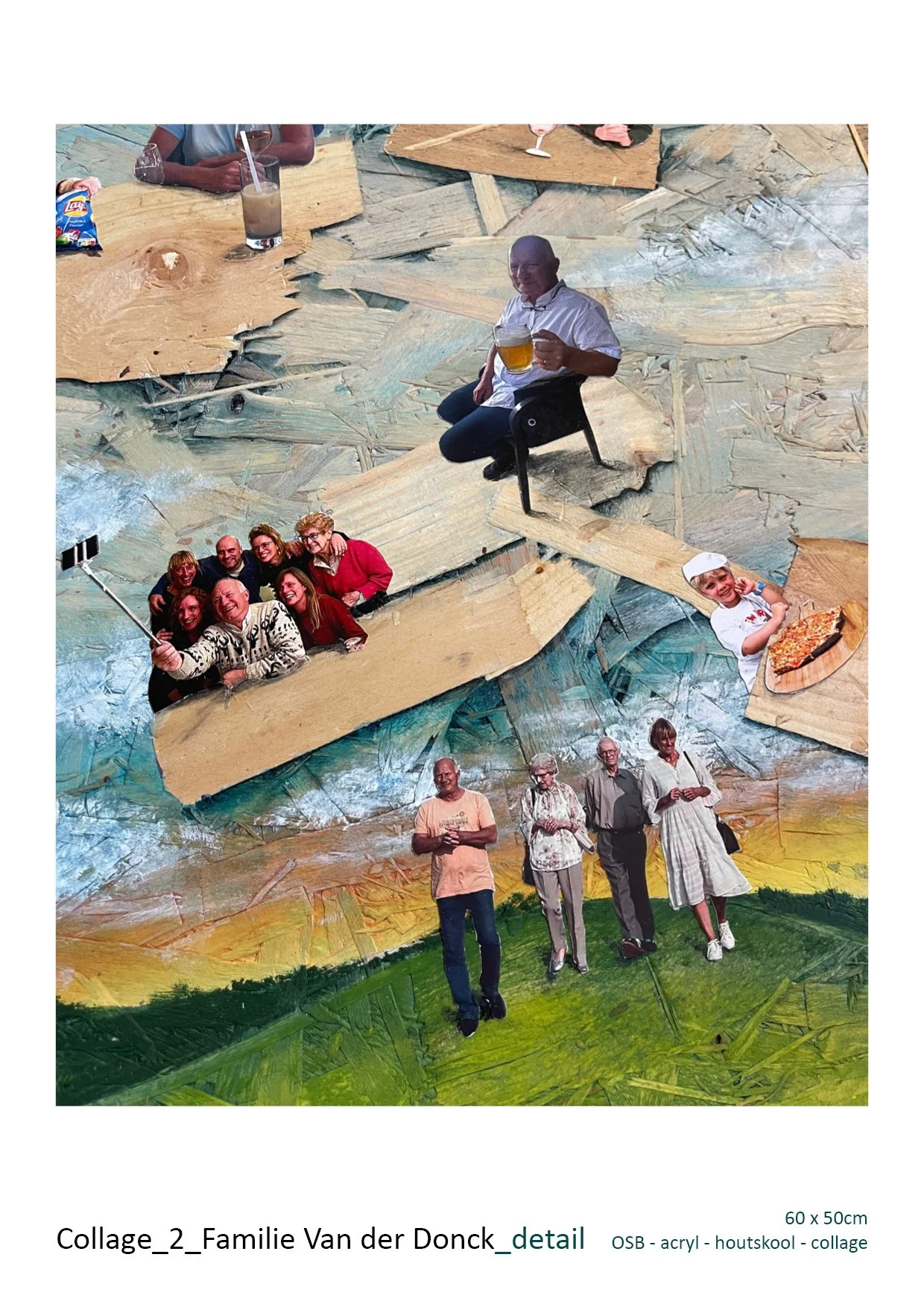 Ik benoem deze werken als ‘collages’, al zou de term ‘mixed media’ misschien beter passen, aangezien foto’s wel het hoofdingrediënt vormen, maar niet het enige element zijn.