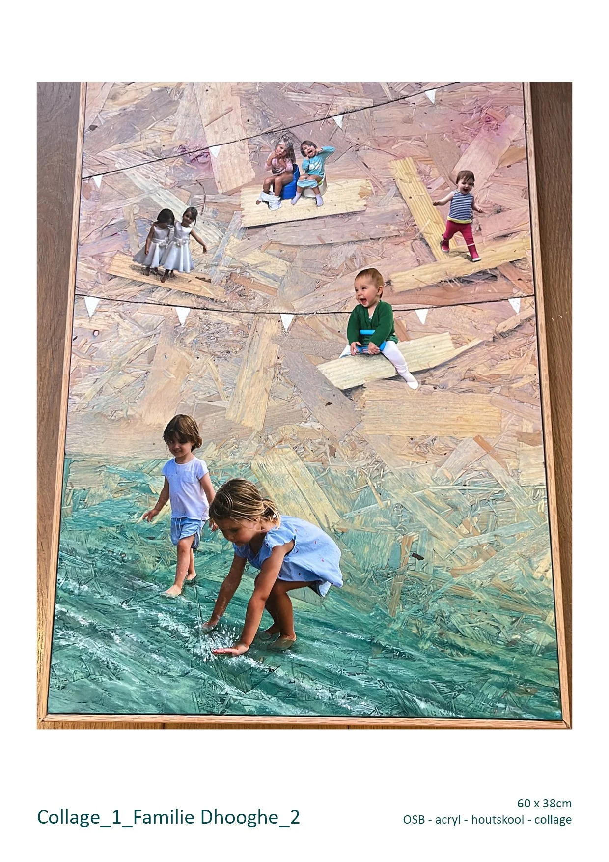 In eerder gerealiseerde werken start de opbouw van de compositie vaak op OSB-houten platen, maar de uiteindelijke drager kan ook een andere houtsoort zijn of doek op frame.